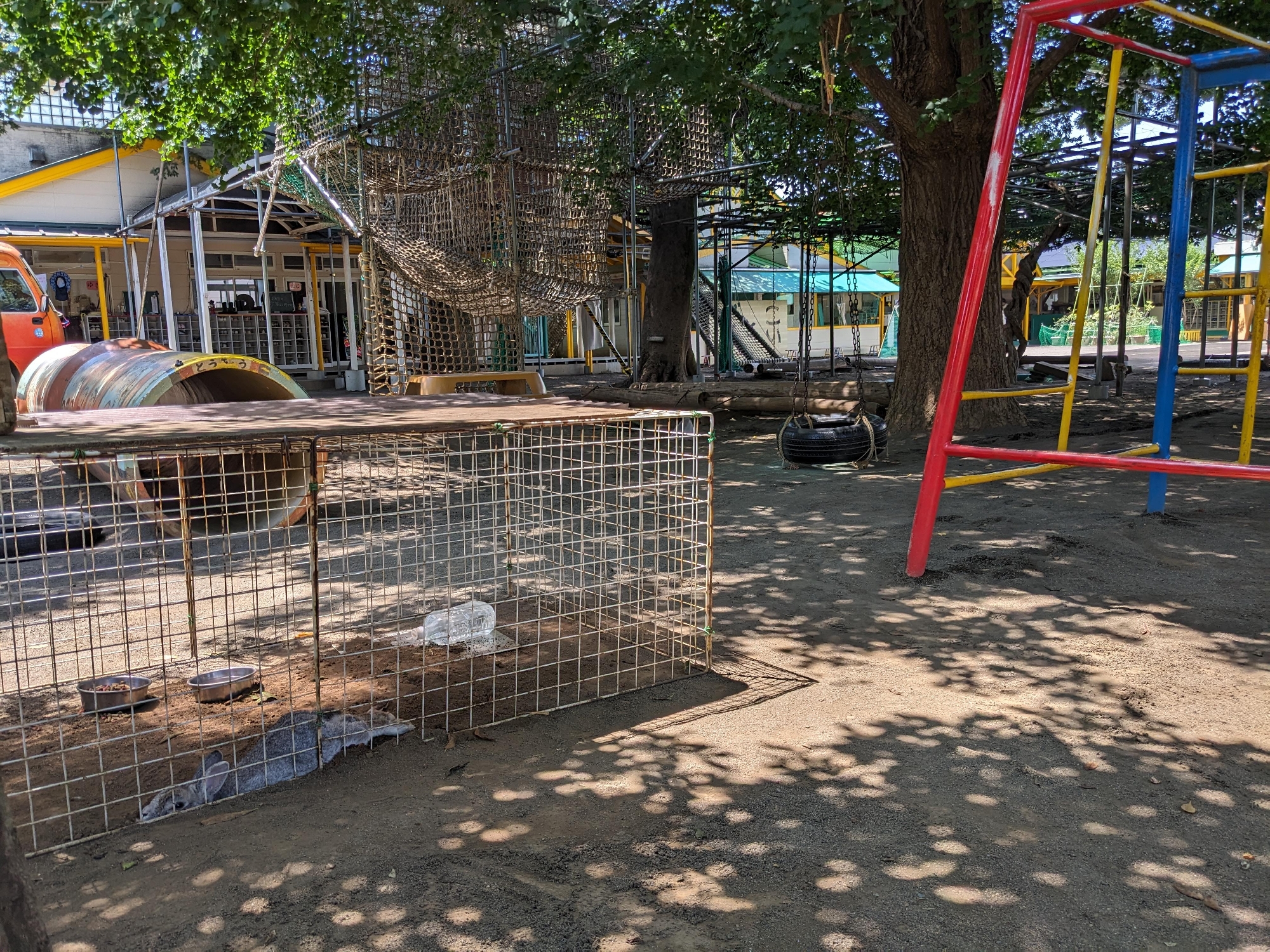 みずほ幼稚園には木陰がいっぱいあるので、炎天下でも涼しいところがあります。