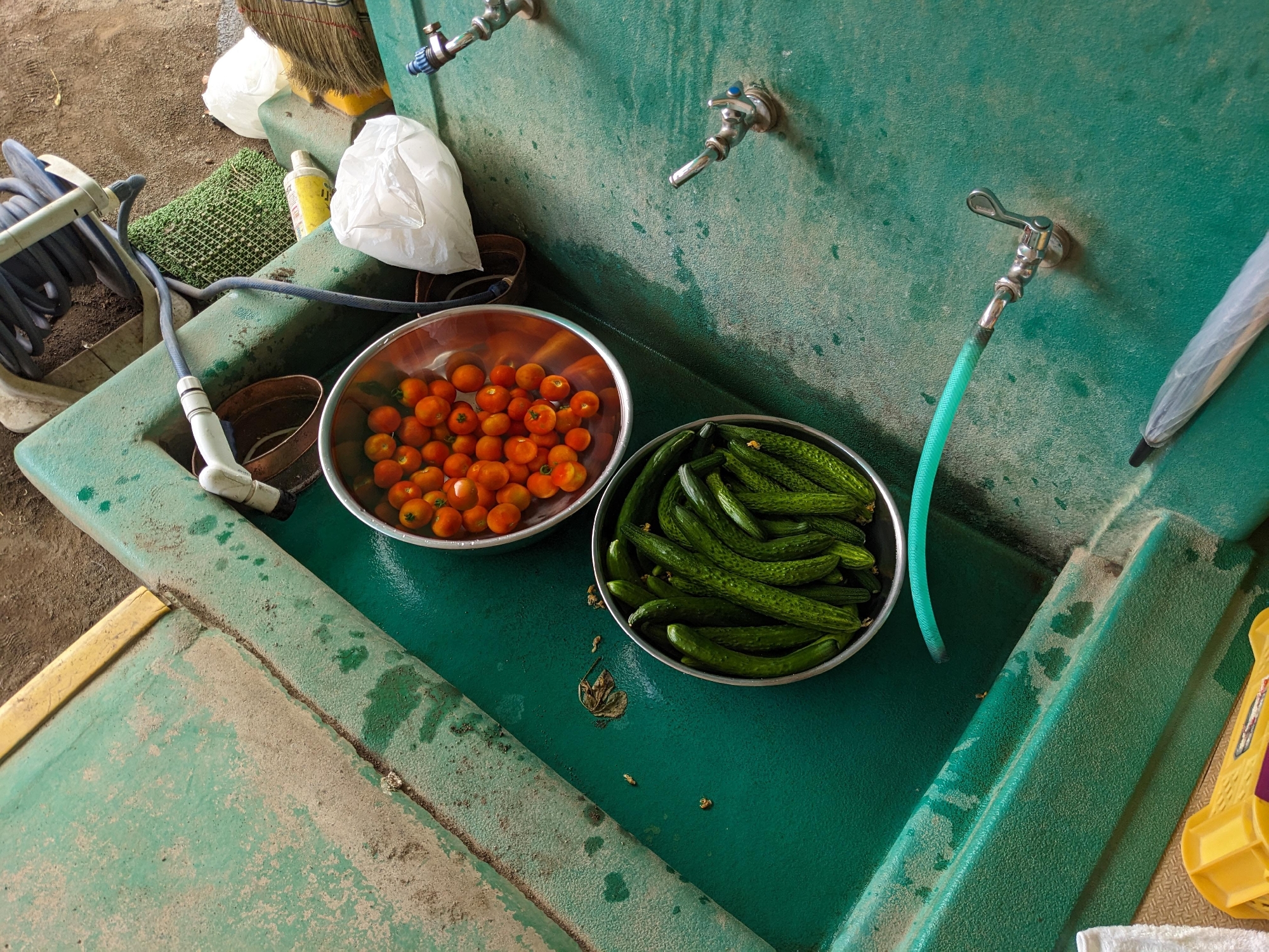 今日はきゅうりとトマトもあって盛りだくさんでした。