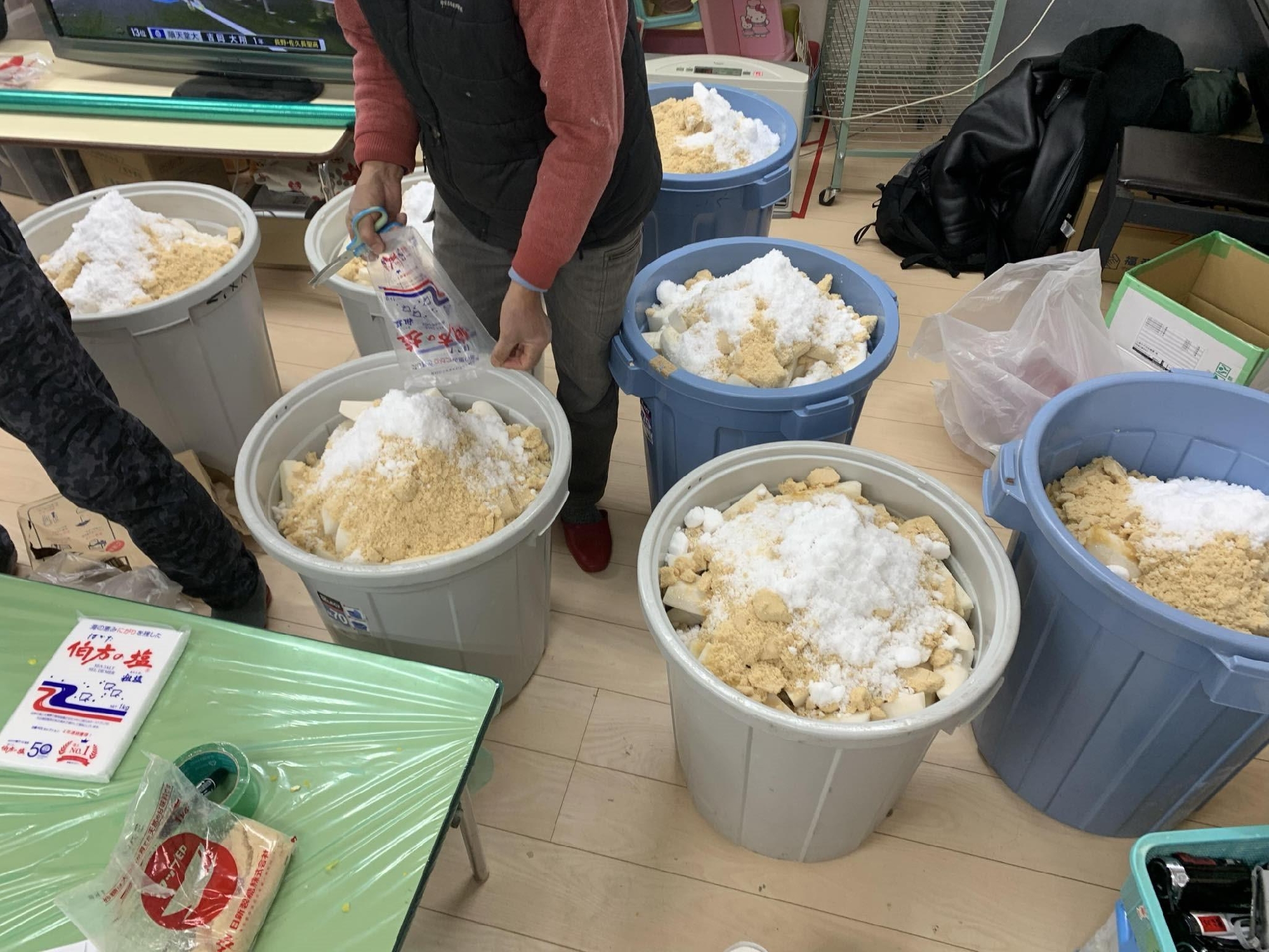年末に抜いた大根150本くらいを漬物にして子どもたちに提供するため、新年早々ボランティアが集まってくれました。