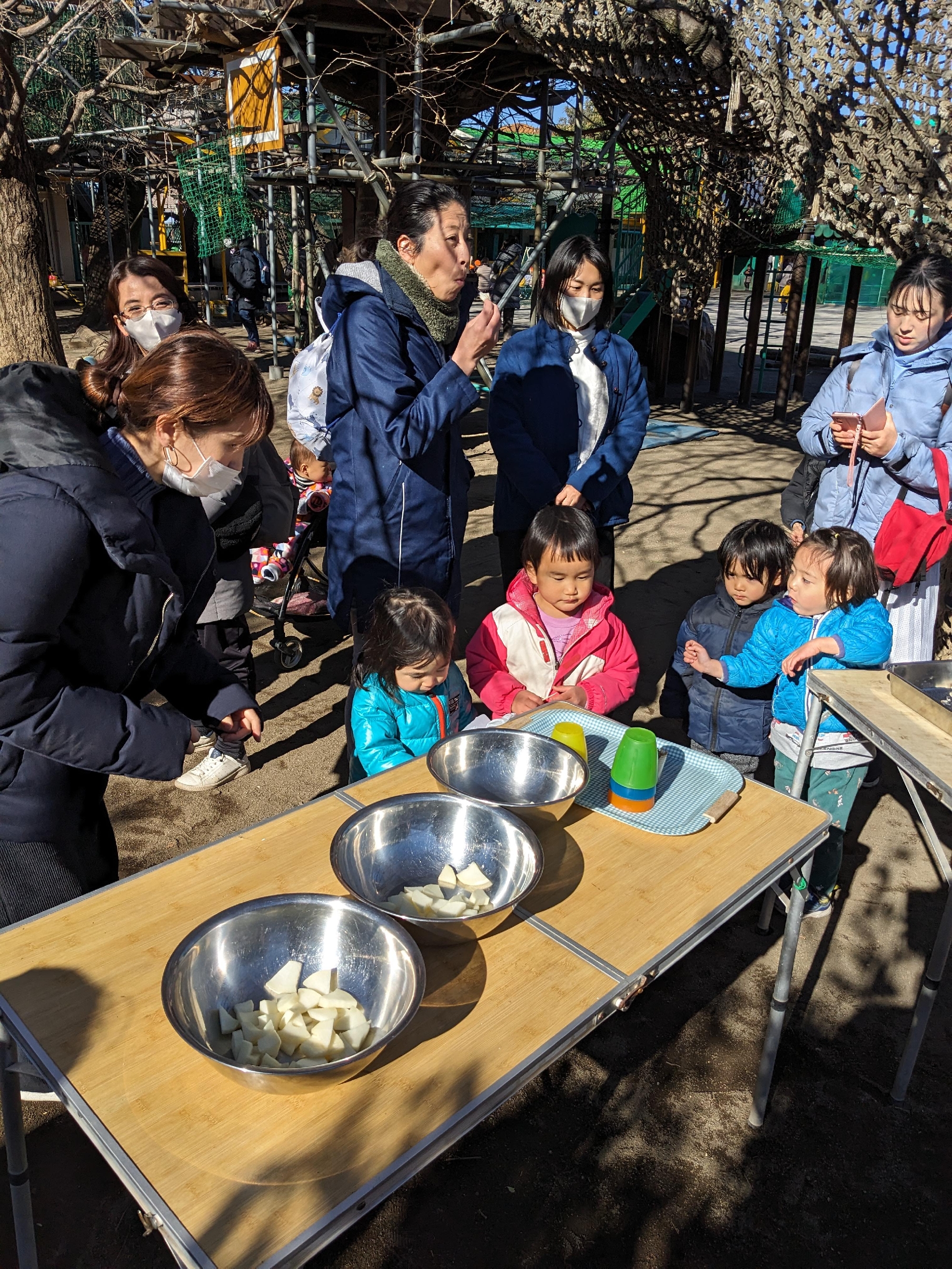 ちょっと熱いので保護者の皆さんに取ってもらいました。