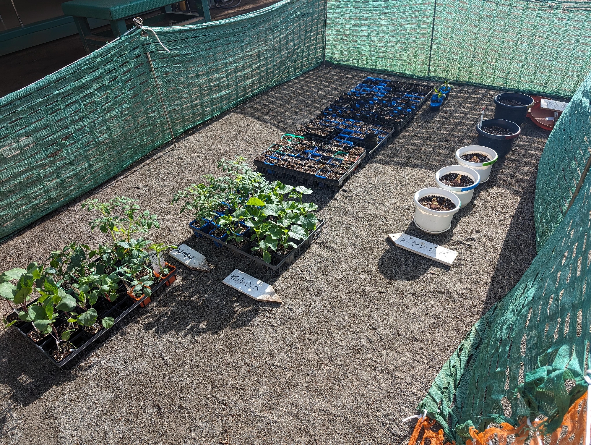 奥の芽が出てないのは年長さんが植えた枝豆です。