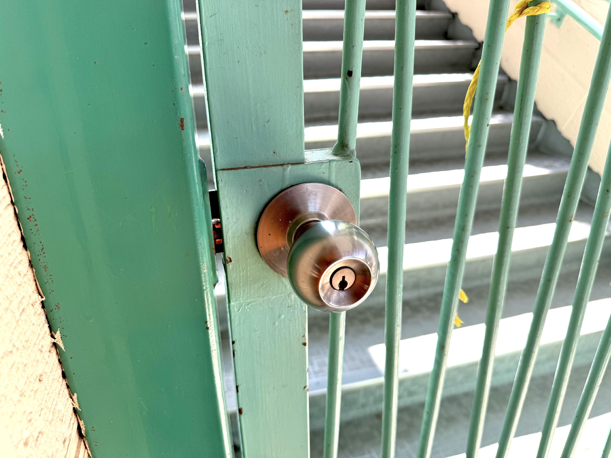 プールへ上がる階段は、施錠管理をしています。