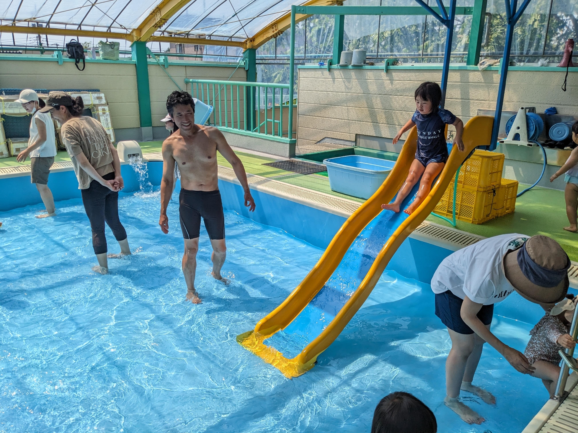 慣れるまでは先生に手をつないでもらって滑りますが、慣れてきたら一人で滑れるようになります。