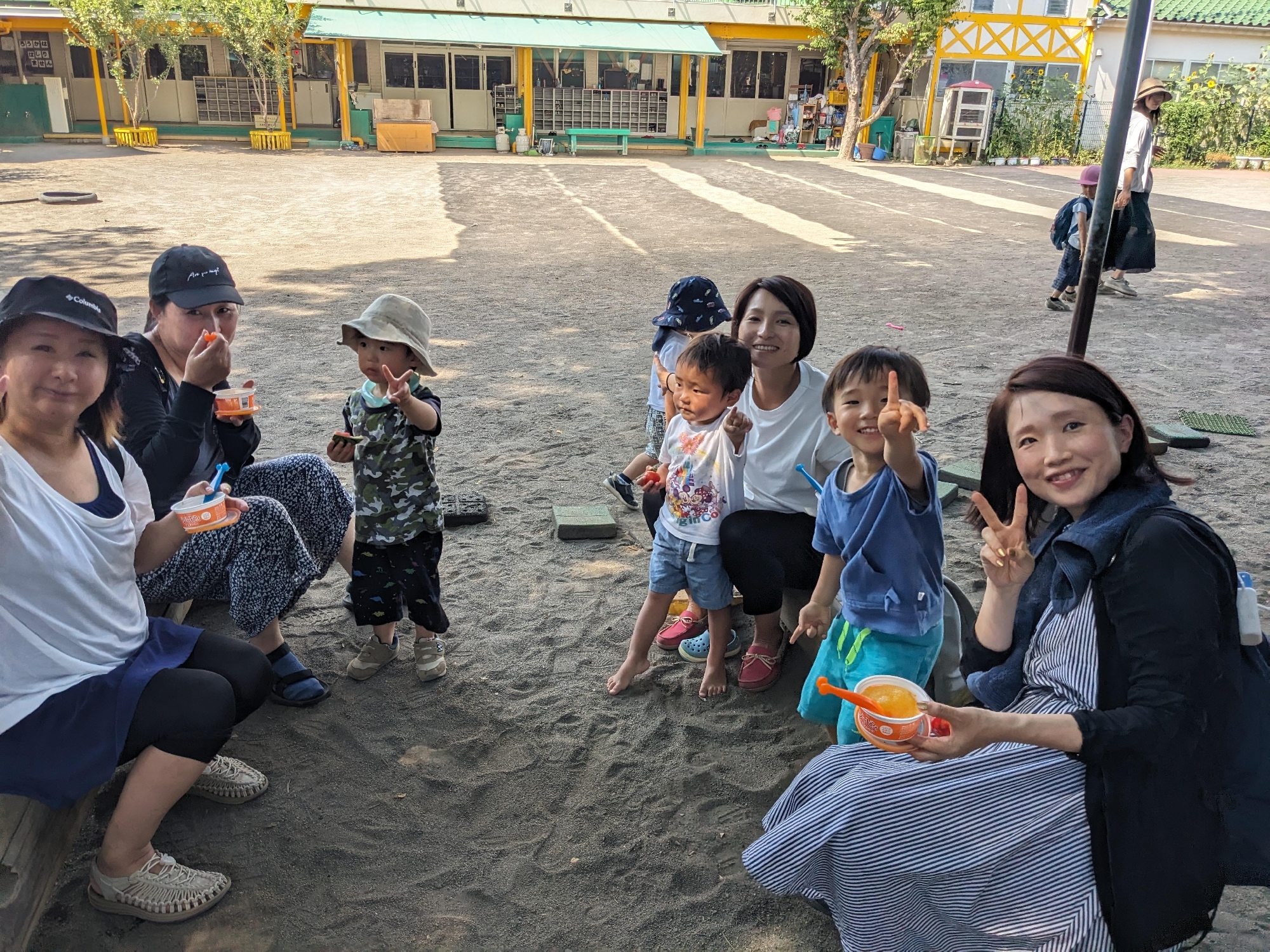 おや?預り保育の子しか写真に写ってないですが、未就園の子どもたちも食べました。