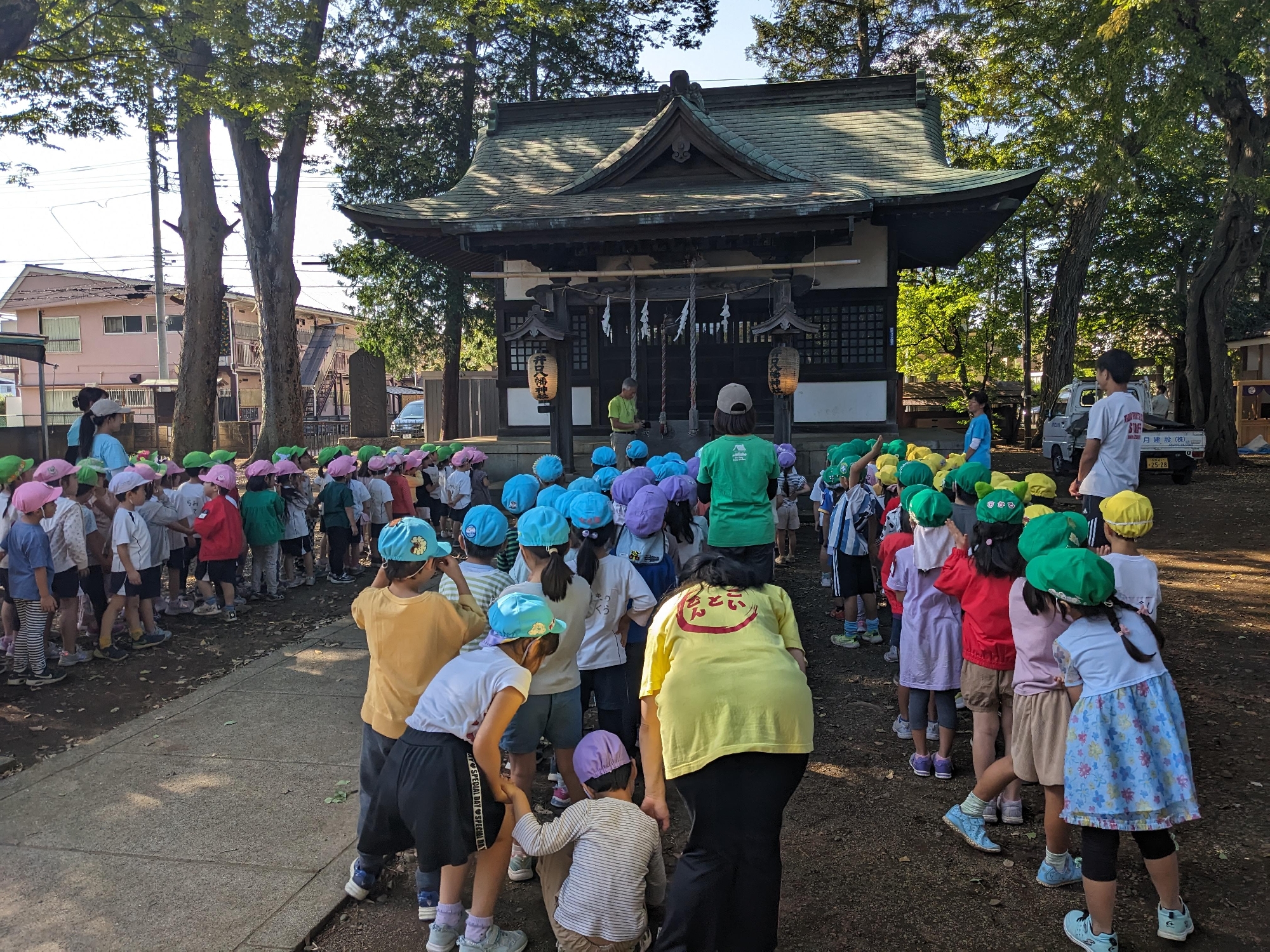 みんなが遠足でケガをしないよう神様にお願いをしました。