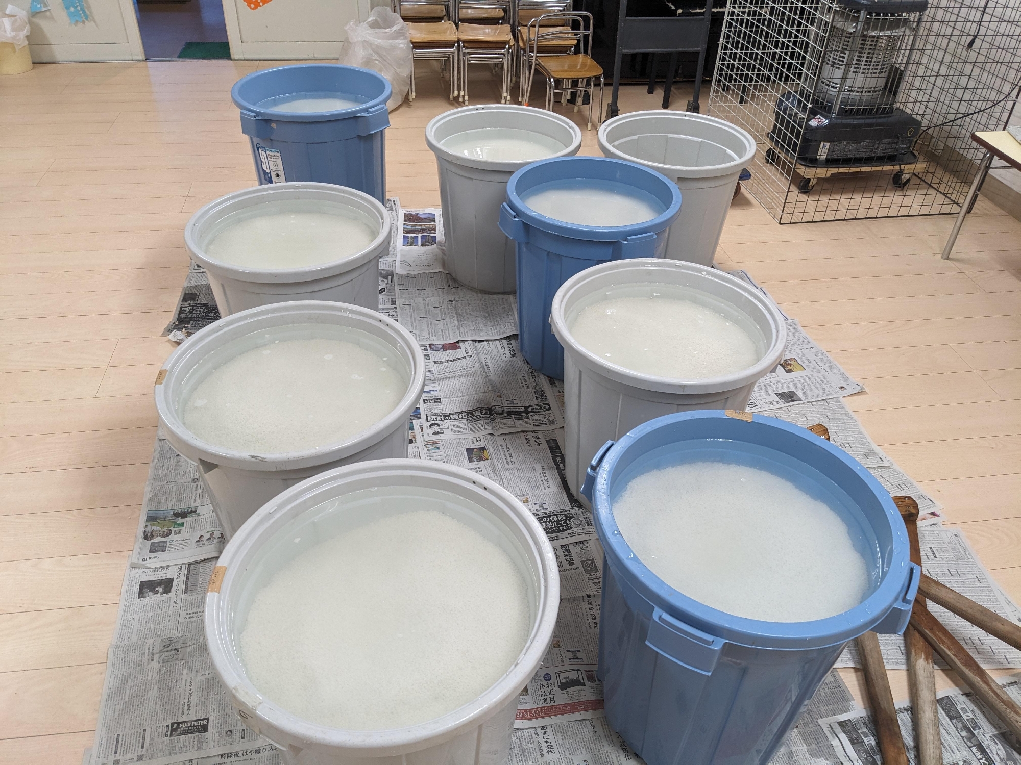 1臼で4kgをつくので、300kgだと75臼ですね。