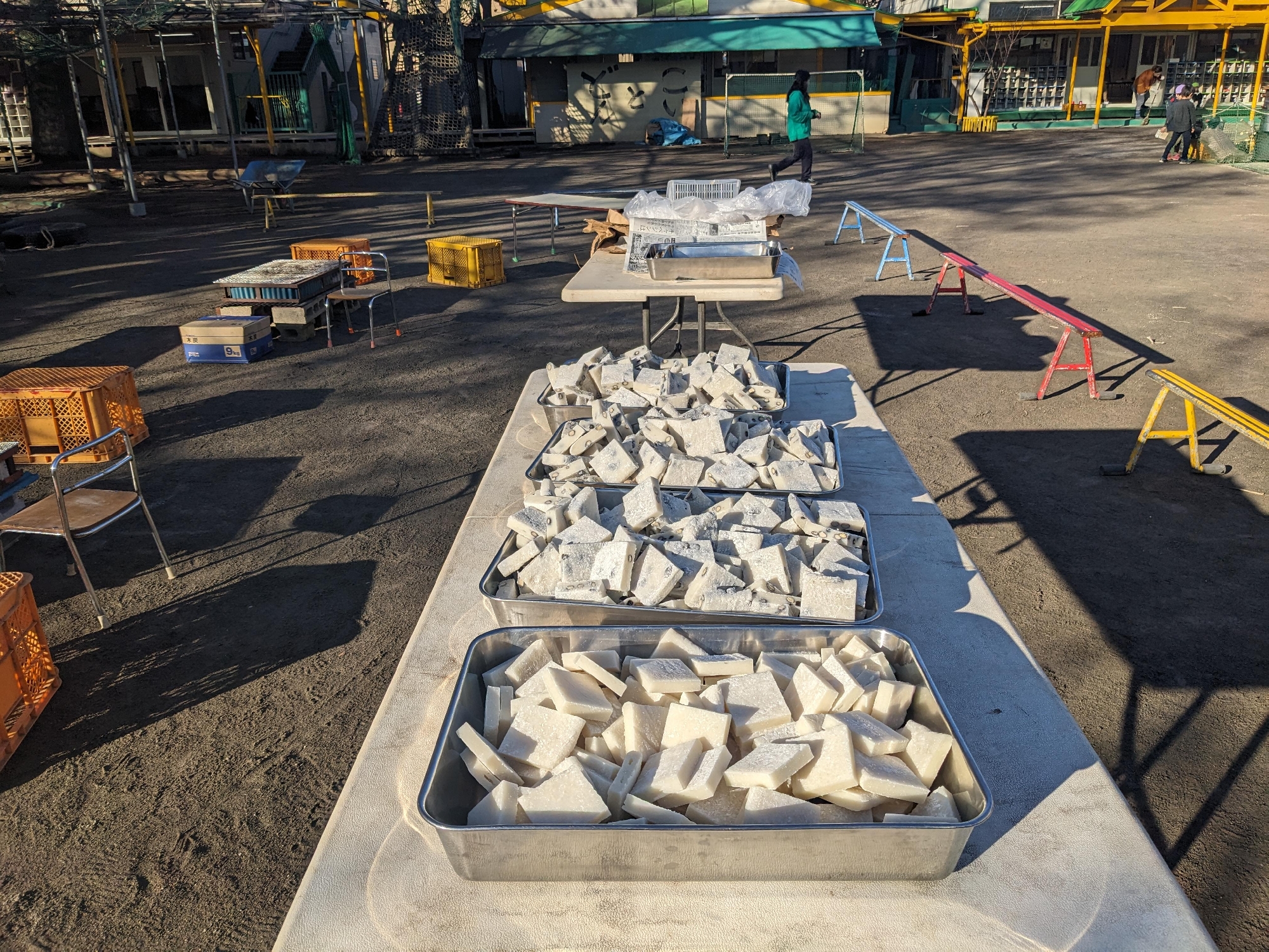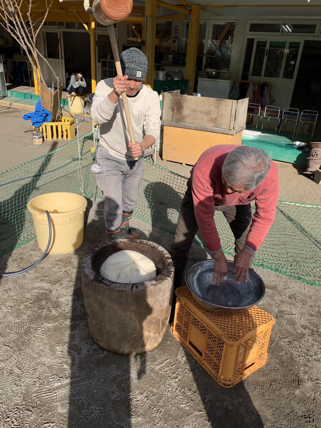 幼稚園児だけでお餅をつくのはむずかしいので、