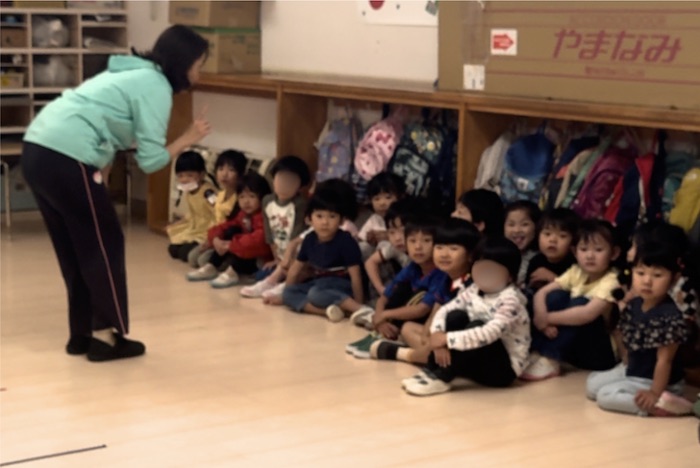 無事、全員が園庭に避難できました。園長先生からお話があります。